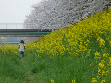 河原に咲いた桜と菜の花のコントラストがすてきでした。